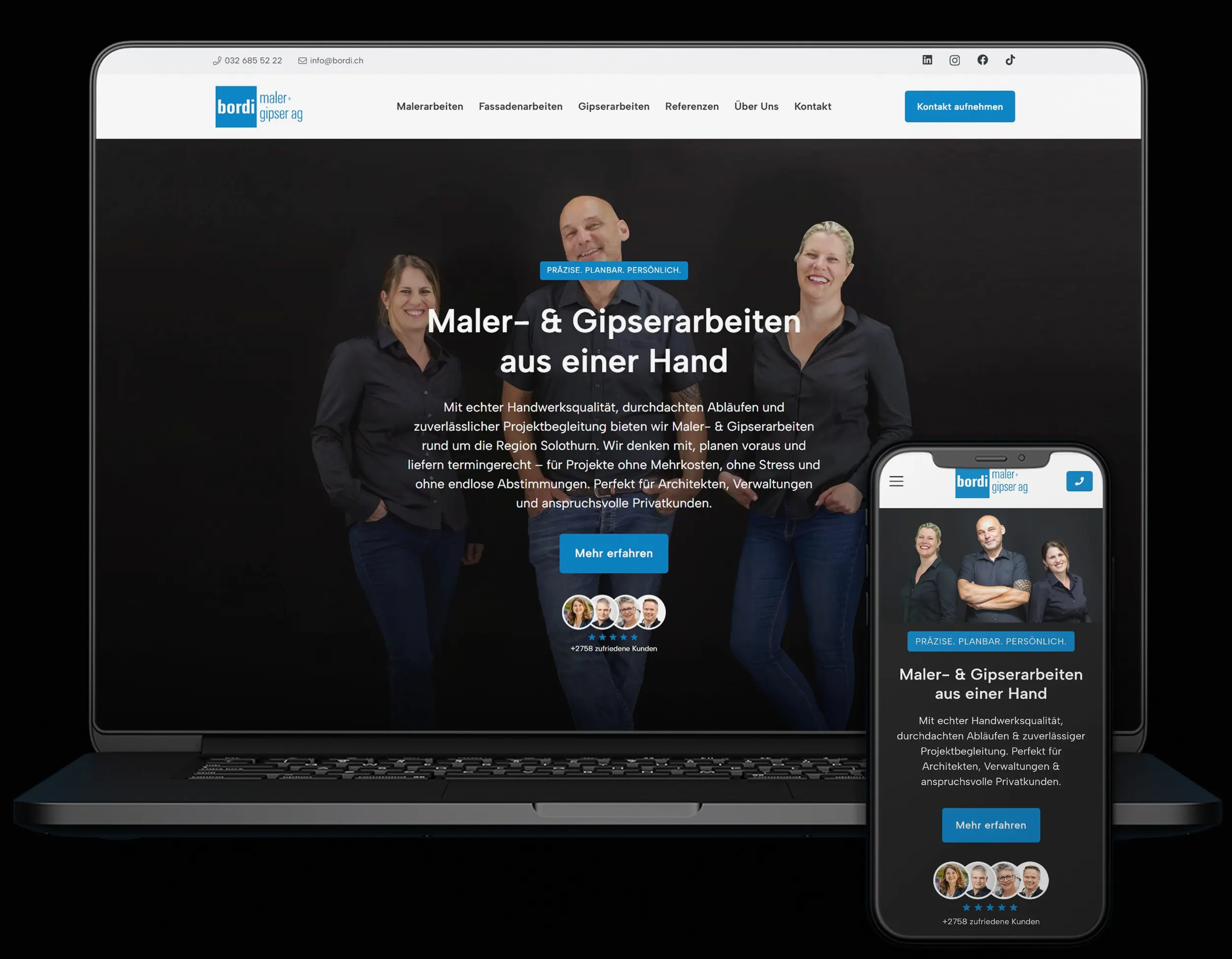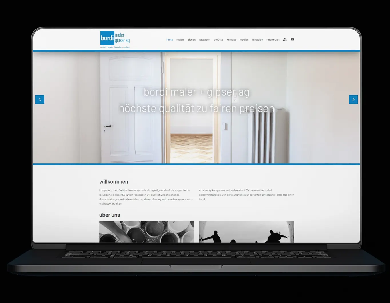 Die bordi maler + gipser ag arbeitete bereits für Architekten, Bauverwaltungen und anspruchsvolle Privatkunden, verfügte jedoch über eine austauschbare Website, die diese Ausrichtung nicht widerspiegelte.